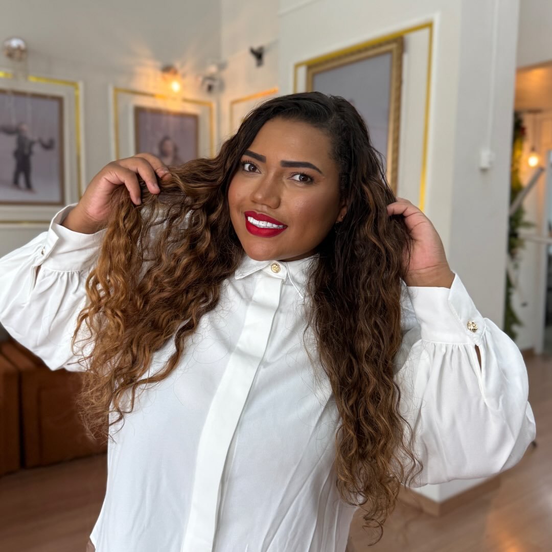 Começou vendendo mega hair com malinha. Recebeu placa de R$2 milhões em faturamento. Hoje tem salões na área nobre de BH.